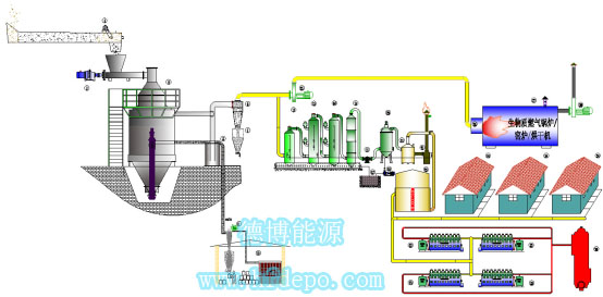 生物質上吸式固定床氣化發電多聯產系統圖
